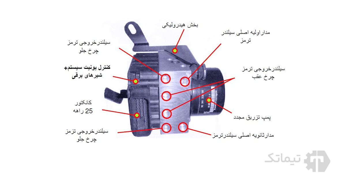 ترمز ABS از چندین قسمت تشکیل شده است که هرکدام نقش مهمی در عملکرد کلی سیستم دارند: