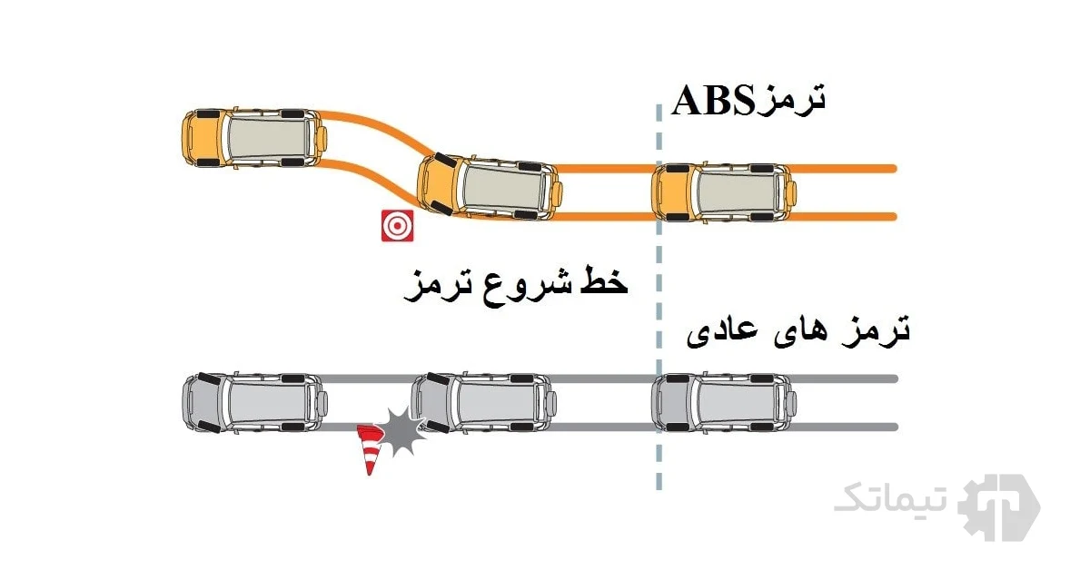 راننده میتواند در هنگام ترمزگیری شدید، کنترل خودرو را حفظ کند و از لغزش و انحراف خودرو جلوگیری کند.